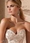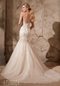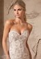 Make a grand entrance on your wedding day in this dreamy wedding gown from the Mori Lee Bridal Collection. The beautiful dress shows off your natural curves by fitting your figure from the bust to the waist and hips and then flaring out into the soft layers of a fabulous trumpet skirt. The sweetheart neckline is embellished with crystal beaded embroidery and it glides along the curves of your bust and dips in the center at a point, drawing focus to your slender neck and toned shoulders. Dainty floral Alencon lace is encrusted with sparkling accents all the way to the skirt, and little nests of floral motifs ride the waves of the layered tulle skirt that cascades down to your feet. A low-cut back adds elegance as the lace bodice closes in a strand of fabric buttons at the rear. Delicate floral motifs adorn the skirt and add sparkle to the enchanting chapel train that completes this spectacular gown.