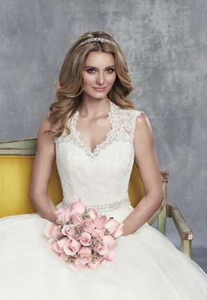 Petite brides like deep necklines, and tall brides choose styles with a higher neckline, while brides with larger bodies prefer styles that touch just below the collarbone.