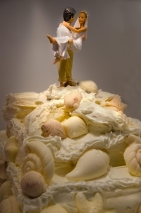 One of the classic wedding groom cake moments in the movies was the armadillo groom’s cake in Steel Magnolias. Grooms often get cakes made that are in the shape of animals. One groom who likes fishing got a cake made to look like a freshly caught fish. Another fishing groom got his cake made in the shape of an open tackle box. The cake can be modeled after the groom’s pet.