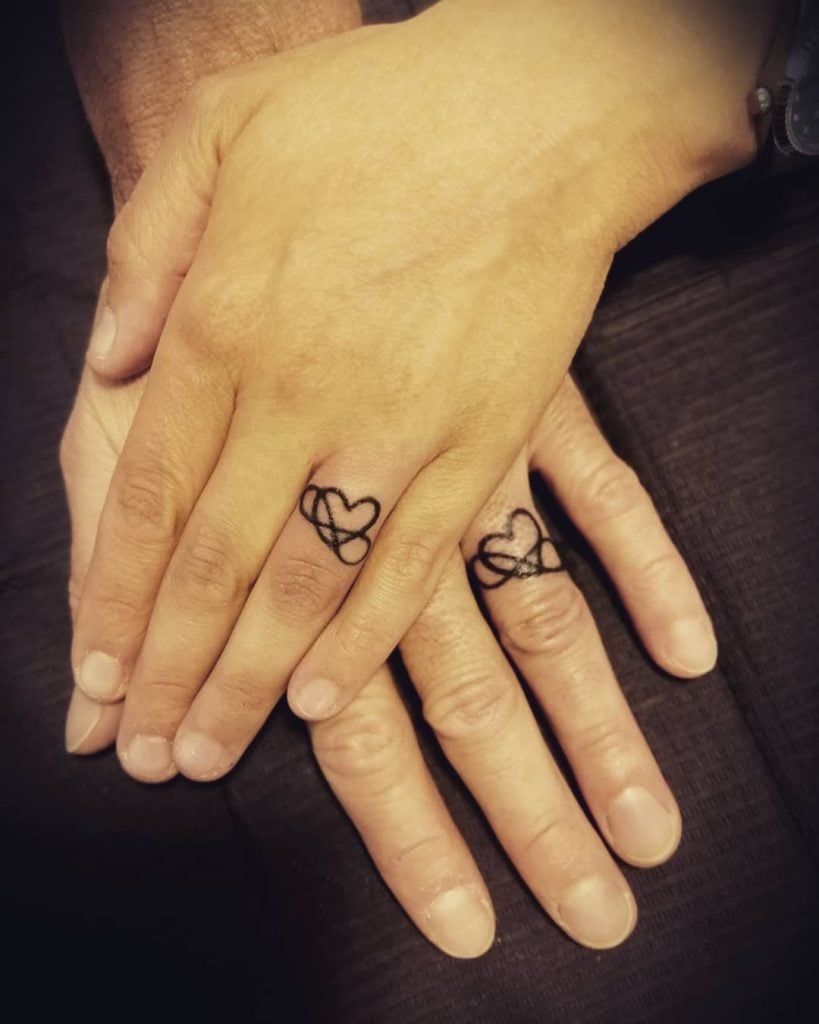 Wedding ring tattoos have grown in popularity massively. However, some people don’t choose to wear rings but get tattoos representing their marriage, usually around the finger.