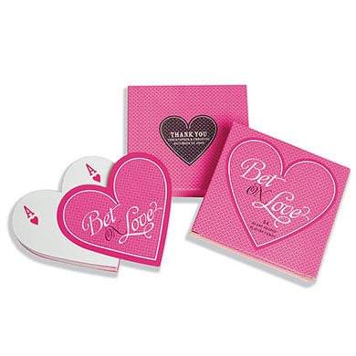 Another favor you may like to take a look at, especially if you have your heart set on a casual wedding style are these “Bet on Love”, heart shaped playing cards that are also very interesting.