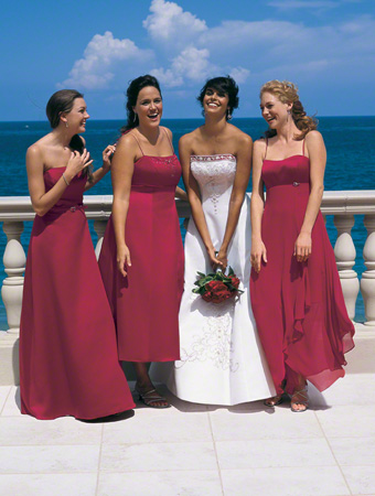 Bridesmaids in red