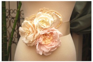 If you are pretty proud of your slender waist and wish to draw attention to it, a floral bridal waistband may be the easiest way to do this. It is possible to adorn the waistband of a dress that gathers at the waist, with blooms of any size. You can have this custom-made or find a ready made accessory here on Etsy. Buying one with fresh flowers online may be out of question for obvious reasons. Nonetheless, you can achieve the desired effect with beautifully handcrafted faux flowers when you find a talented designer to custom create it for you. Now, if you want nothing other the real deal, discuss your options with your florist. Just like with a floral necklace, she may be able to design a floral waistband with flowers that are sturdy and do not buckle under strain. Match the flowers to your wedding palette, and stick with blooms that look good on your frame. You cannot go wrong with your choice. For a sophisticated effect, it is best to add just a few blooms in a carefully fashioned design towards one side of your waist. For an ethereal, dreamy look, a waistband covered in small, soft flowers would be best.