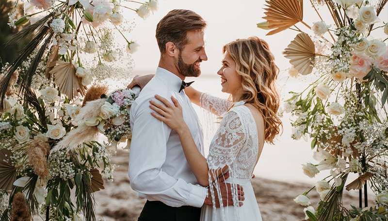 If you are someone who likes grandeur style, then you can go for a grand entrance. Something like a tent for your reception with drapes attached and pulled back to create an inviting entryway is an excellent idea. To add that extra sparkle, you can even incorporate some string lights. If you are planning a beach wedding, then flower arches would be the best choice. The muted green accents from the leaves and the pop of colour from the flowers will make it your favourite spot to take your wedding pictures.