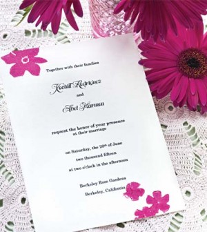 If you have ordered plain invitations through a printing company, you don’t have to forego personalisation. One wonderful way to personalise pre-printed invitations is by using glitter and confetti. No, not the sand-like flakes that stick to everything and hang around your house for months. Shaped glitter and confetti can be found in hundreds of varieties now. You can choose something that is generically wedding-related, such as silver wedding bells or tiny brides and grooms, or confetti that is related to your wedding’s theme, whether your theme is anything from tropical or Wizard of Oz. Whatever you do, don’t glue it, though. Simply sprinkle a bit in the envelope with the invitation so that its recipient receives a cute surprise.