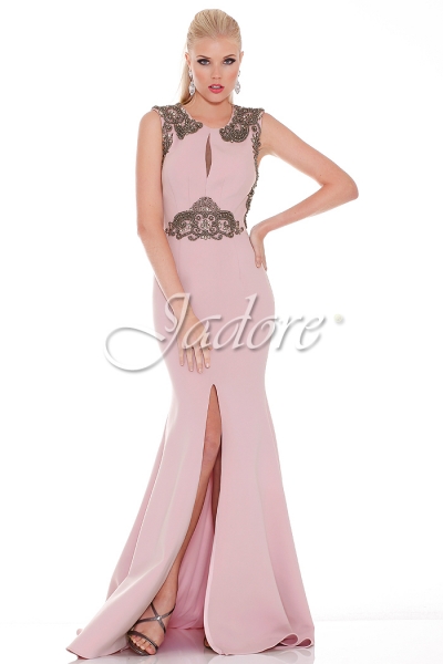 This gown from the Jadore collection is a dress that can be accessorized in many different ways to create the look you desire. It is a lovely dress that will work by itself and look great with the right choice of accessories.