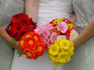 Here is an easy way to make your bridesmaids look unique, while keeping their dressing style the same. Use different bright colors in their bouquets. This is most effective when the colors of their dresses are the same and the design details are similar. So, the bouquets will pop against the identical background and be a statement in itself. This idea best works against neutral colors like black, white, navy or brown. The alternative is to use a variety of colors in another accessory, like shoes or belts.