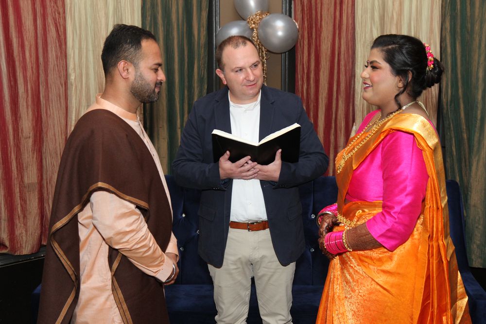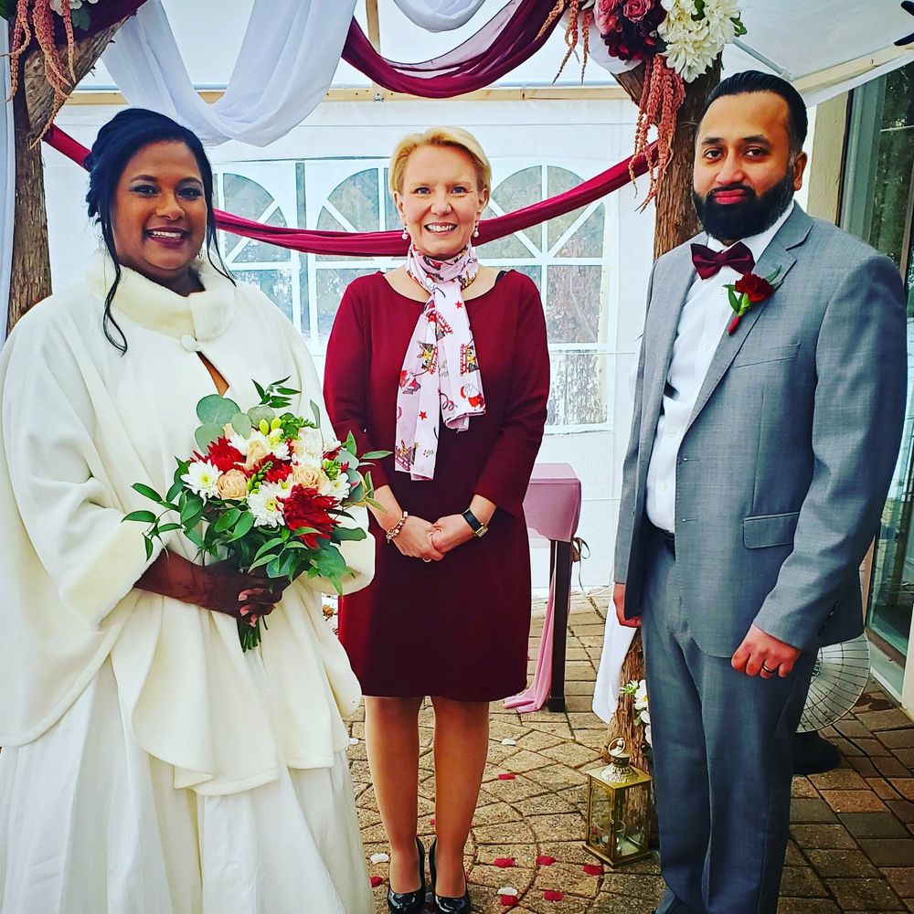 I had many interests in different types of businesses where I was able to use my talents to keep myself occupied and take care of my home and children while being a single mother with four kids, and no matter what business I put my mind or hands on to or my political life which I once loved and wanted to change the world, I always loved the idea of getting people married because it gave me such an emotional satisfaction to see people married who were in love and everything felt so real. Coming from a very diverse background with Scottish, French and Indian backgrounds, I am very comfortable not only performing my duties as an officiant but also aware of couples’ cultural aspects. Therefore I put a lot of emphasis on their culture in the ceremonies if I have to, and I pay attention to making them feel comfortable while making it fun and memorable for everyone. At times, I put on their national dress as a message that I’m part of their culture and celebrating this very special day with them and their family. I love my job and enjoy watching the raw emotions and genuine love between couples, and I treat every ceremony like it was my own family getting married. Bring an officiant who is non-denomination. I recognize and respect every couple regardless of their race, colour, religion or gender because love defines everything. Being an officiant helps me connect not only with the couple and their families, but it helps me have a large network with other vendors and small businesses who are as passionate as what they do in the wedding business. I wish to live long enough and stay healthy to do this work for a long time.