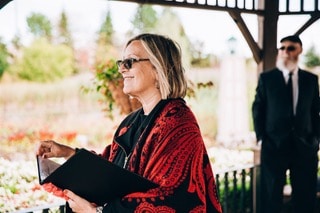 She takes pride in being accessible by email and text so that you can be confident about your ceremony. Her years of experience have taught her that remaining calm is key. In her own words, “A wedding is a stressful day and I often arrive at a chaotic scene just prior to the ceremony. My naturally sunny calm disposition will give you comfort during one of the most stressful days of your life. I can remain calm and take charge when needed.”