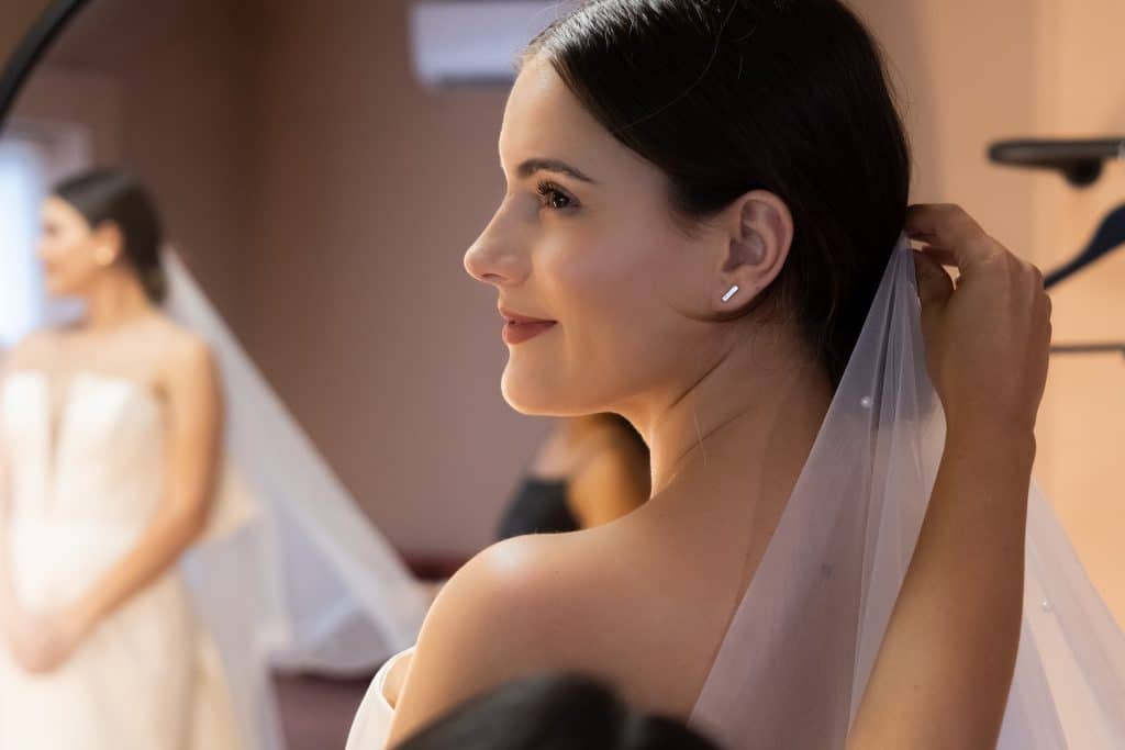 A trial makeup session before your wedding is crucial, especially for brides who wear glasses. During this trial, wear the glasses you intend to have on your wedding day. This session allows you to see how the makeup interacts with your frames, ensuring no overshadowing or underplaying of features. It’s also an opportunity to see if any products cause reflection on the lenses or if there’s any unwanted transfer onto the frames.