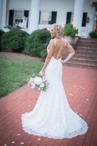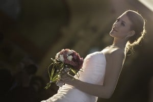 Wedding dresses with dramatic back details are all the rage now. There is plenty to choose from keyhole designs to low-cut backs and illusion details. The relevance of this detail is that this is usually a signature element in the bride’s overall look, and her choice of bouquet should address this feature. Back details in lace can be combined with traditional and classic bouquet designs. However, if the details are modern, like a low-cut style or cut-out design, it looks best when worn with a bouquet that is styled in a modern fashion. Exotic flowers and intense colors will bring out the sophistication of such a gown.