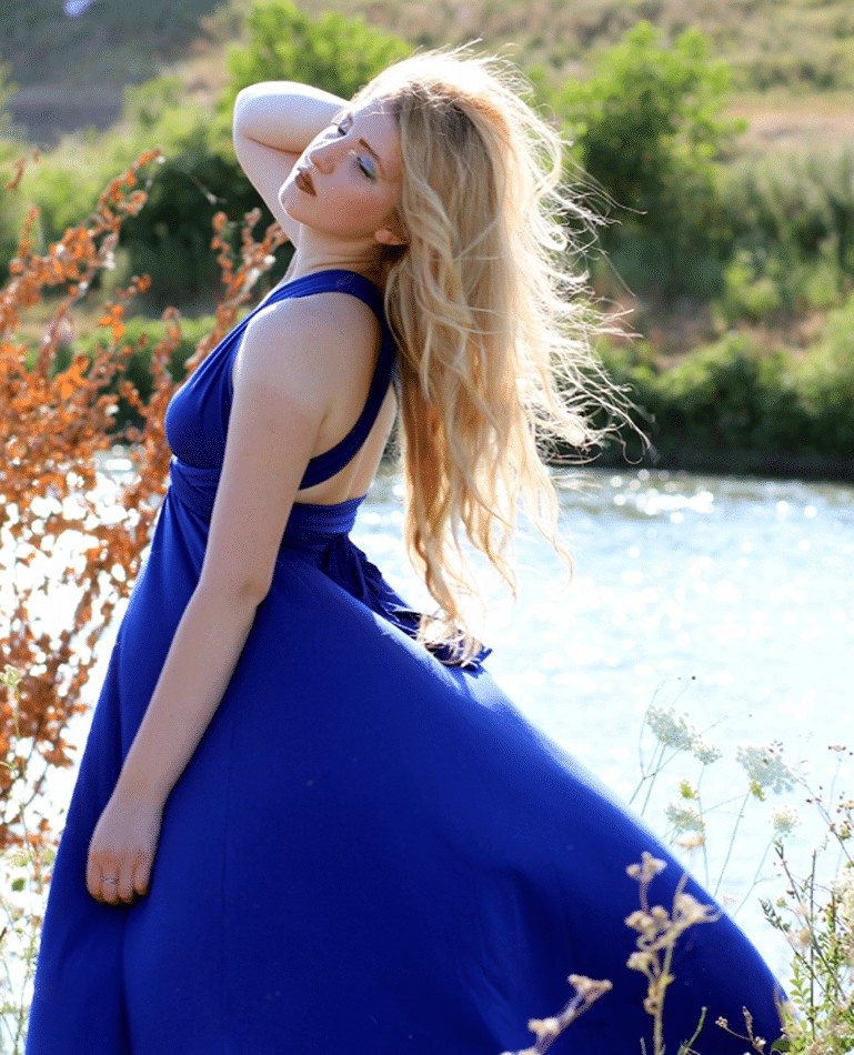 I really like the blue colored one that you have shown here. Even though it is not a white wedding dress, it sort of seems “traditional” to me still.