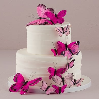 - Choose inexpensive cake toppers like the butterfly toppers featured in the cake in the picture above, or try your hand at making a cake topper yourself, for a fraction of the cost of doing it in sugar