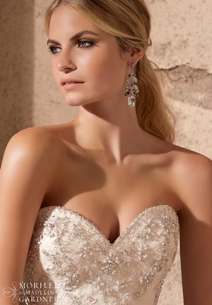 With metal beading, crystal embellishments, rhinestone work and shimmery lace, you have so many choices. Don’t hesitate to choose a wedding dress that is a masterpiece of embellished details. Forget simplicity; choose a dress with as many details as you can afford to wear without drowning in it. For a cool, sophisticated and timeless look that is glamorous as well, opt for a wedding gown in Larissa satin or Duchess satin, and the subtle sheen will add a touch of luxury to your overall look.