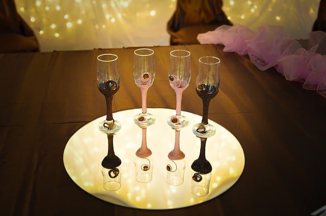 Use the serving glasses to double up as party favors, and have your monogram added to them for this purpose. Not only will your guests enjoy the gesture, they will also remember your celebration every time they happen to see the glass you gifted them. For bottled drinks don’t forget to add custom labels to make them just right for the occasion.