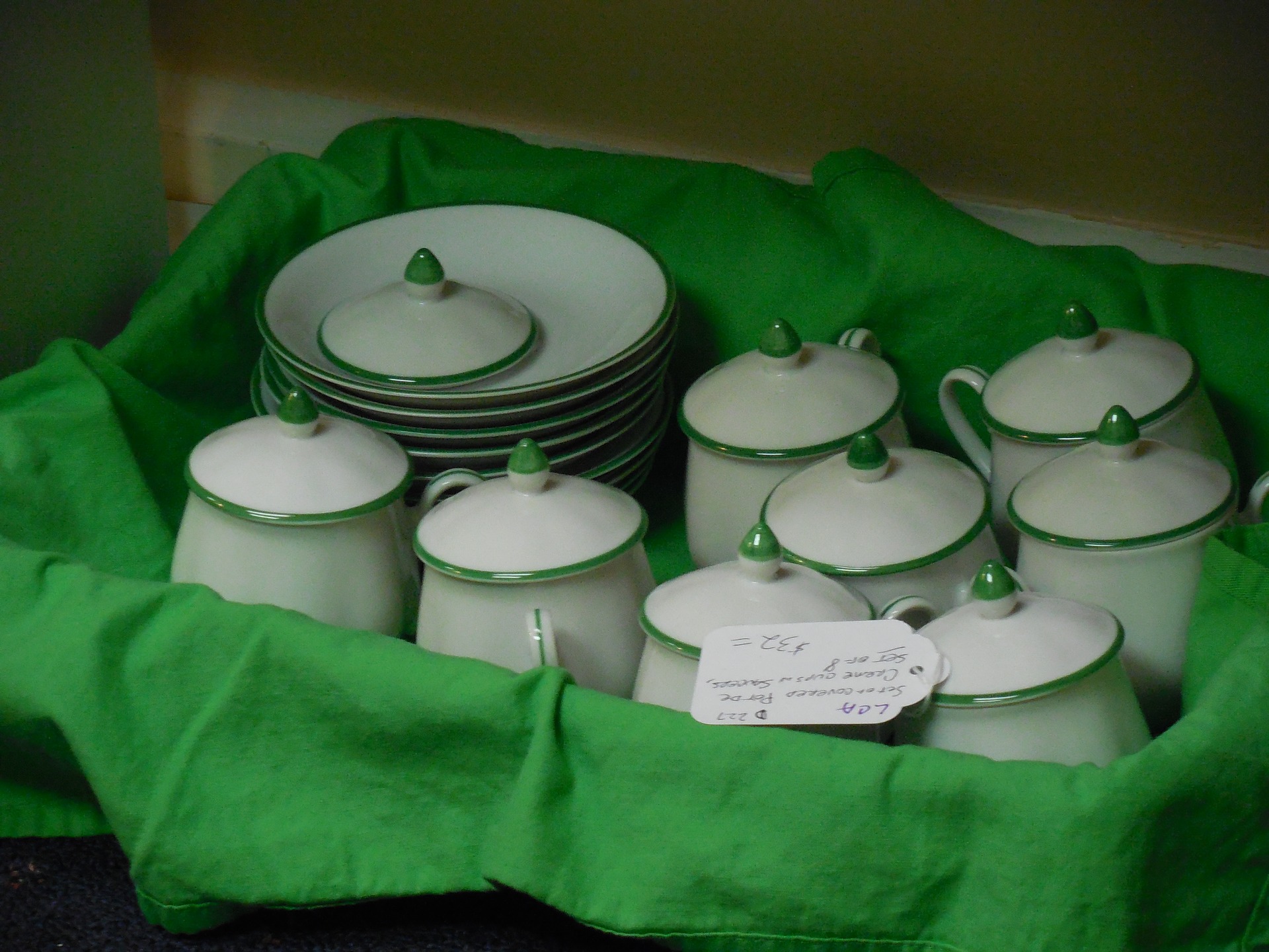 11.Simple green and white china for the food service