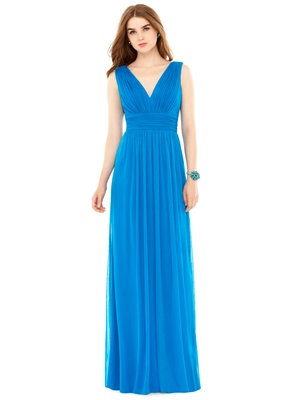 Different women have different body structures, heights, and shapes. So, choosing a single silhouette for all of them may not be the best idea. There are universally flattering silhouettes if you must have matching outfits for all of them. The modified A-line dress, that drapes close to the body all the way from the bust to the hips, and then extends into the shape of an “A,” is one such silhouette. The empire style dress with a raised waistline also looks good on most body types and is even suitable for the pregnant bridesmaid.