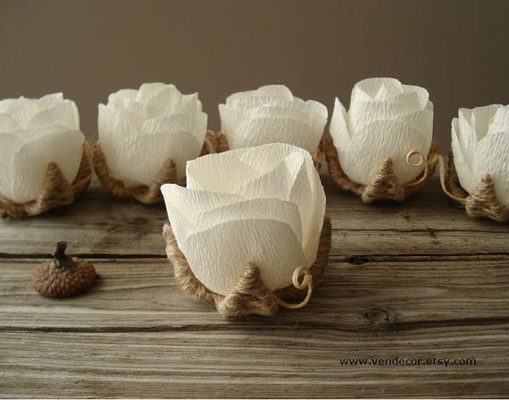 Many brides choose to add candles to the design of their wedding and you will find many different styles on Etsy. From rustic to modern and everything in between, there are options available to fit with any wedding design. You can even find special glass jars that can be fitted with a flameless candle or a tea light candle as well.