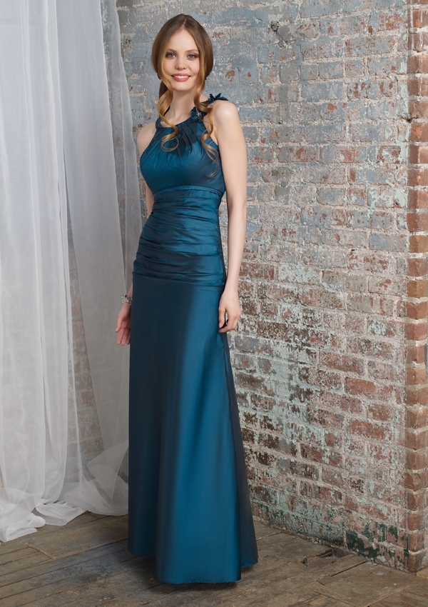Scarlet and black aren’t your only options when you shop for a holiday dress at Best for Bride. To showcase your complexion, consider a subtle teal design that is purely feminine and totally appealing. The sweeping, satiny gown shown above will make you feel like royalty, and it’s surprisingly affordable. This elegant, halter-style design will show off your pretty arms and shoulders, while also creating an enviable, hourglass silhouette.