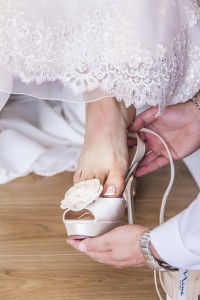 New shoes are notorious for causing shoe-bite. Standing in a shoe that hasn’t been worn-in for an entire day can be tortuous, as you will be walking around and using it a lot on your wedding day. If the shoe pinches, your feet can be sore by the end of the evening, and this will ruin the entire experience for you. So, as soon as you take your shoes home, make sure you set aside time to wear it occasionally. This can be for an hour every three or four days, so your feet slowly get accustomed to the shoes. It will also help you feel comfortable moving around in it, especially if the shoe has high heels. You will not have to worry about wobbly shoes or tripping off the heels on the day of your wedding, if you are already used to the shoes. Additionally, wear it to your wedding dress appointments, and practice moving around in your wedding dress, while wearing these shoes. This will help you adjust to both the long and heavy gown, as well as the pretty shoes, and make the task of moving around on your wedding day much easier.