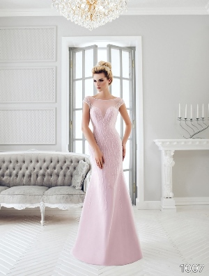 This is a stunning beauty from the Mori Lee bridal collection. The 6836 dress is of floor-length, where the details are concentrated in the embellished bodice. With a V-neckline and beaded satin belt, the dress has bridal charm. However, it doesn’t overwhelm with details. The gathered A-line skirt is universally flattering, which makes it suitable for brides of most body types. It also features an amazing illusion back. This dress would be beautiful for a non-traditional wedding in the warmer months.