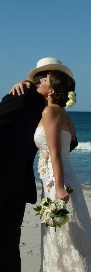 One of our customers, Julie Santos, is an example of how bridesmaid dresses can work as wedding dresses. Her pick was a bridesmaid dress from our Jasmine collection. Julie, who was married on the beach, says this was the perfect dress for her big day, and many of her guests couldn’t even believe that the dress she wore wasn’t from a wedding dress collection. Pictures of Julie on her wedding day are available here.