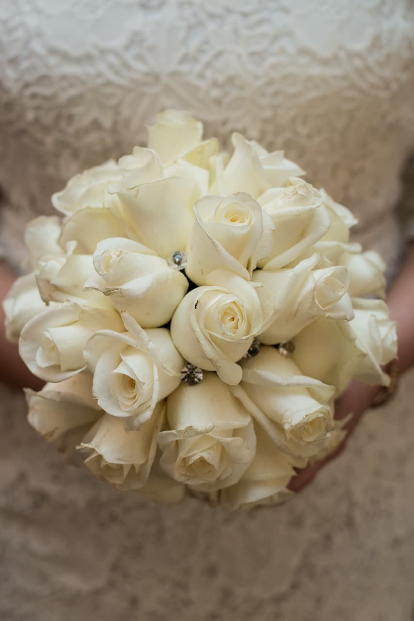 Add the finishing touches to your white wedding outfit with a classic white bouquet. A monochromatic white bouquet is in no way boring, as you can always mix and match textures by choosing different types of flowers to make it interesting.
