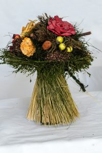 Bridal bouquets had names, like the nosegay, cascade or round bouquets. They were traditionally formed of flowers that a florist gathered fresh and dressed into a tight setting. This isn’t always the case today.