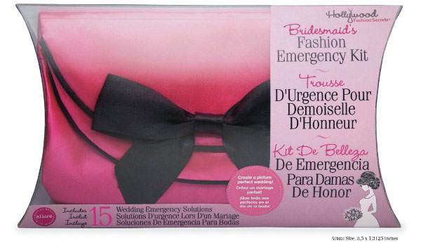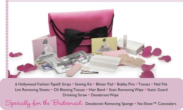 The emergency kit for bridesmaids does more than save the big wedding day. The kit itself comes enclosed in a beautiful pink purse (white purse for bride's fashion kit) that can be useful to the bride. Even though she may not think about it, the bride is going to need a small purse and the kit will make a fashionable yet useful purse.