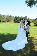I wanted to send you some photos from the wedding 3 weeks ago. We had a fun, relaxed day and I wasn't the only one that LOVED my dress, I received many compliments. My mother mentioned that there were a few ladies who just loved, loved it. Thank you for your help with getting the dress sooner then I expected and you promised me, what a stress relief to have it in hand. And the fabric that you provided that matched my dress made a beautiful dress for my flower girl.