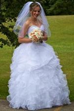 My husband and I would like to say a big thank you for all your assistance, in helping me get my beautiful wedding dress in time for our wedding which was on the August 20, 2005. I know it was quite a task, as I ordered the dress only about 7 weeks to the wedding, but you were very patient, pleasant and helpful. We really appreciate it! We've attached a photo of us in our special day.