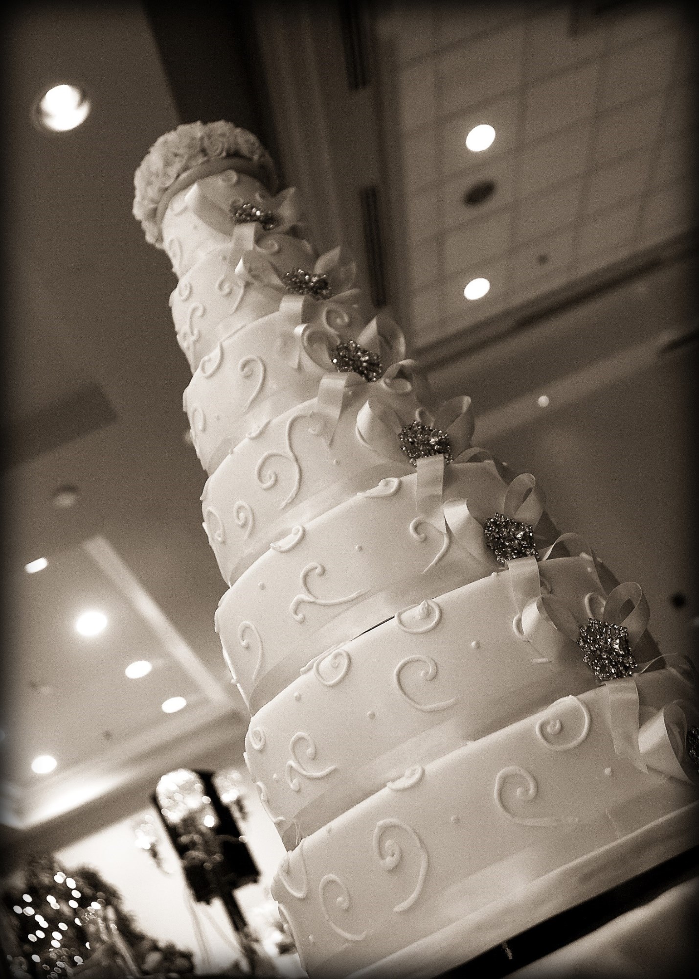 "Jayne" grand wedding cake design in 7 tiers for 300 guests.