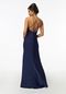 Sleek Silky Satin bridesmaid dress with a high neckline and adjustable strappy back. Shown in Sapphire. View Silky Satin swatch card for available colors.