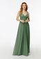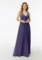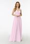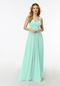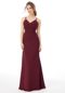 Flowing Chiffon bridesmaid dress with a v-neckline featuring draped detail, to contour the bodice, and straps that meet to create a v-shaped back with sash detail. View Chiffon swatch card available colors.