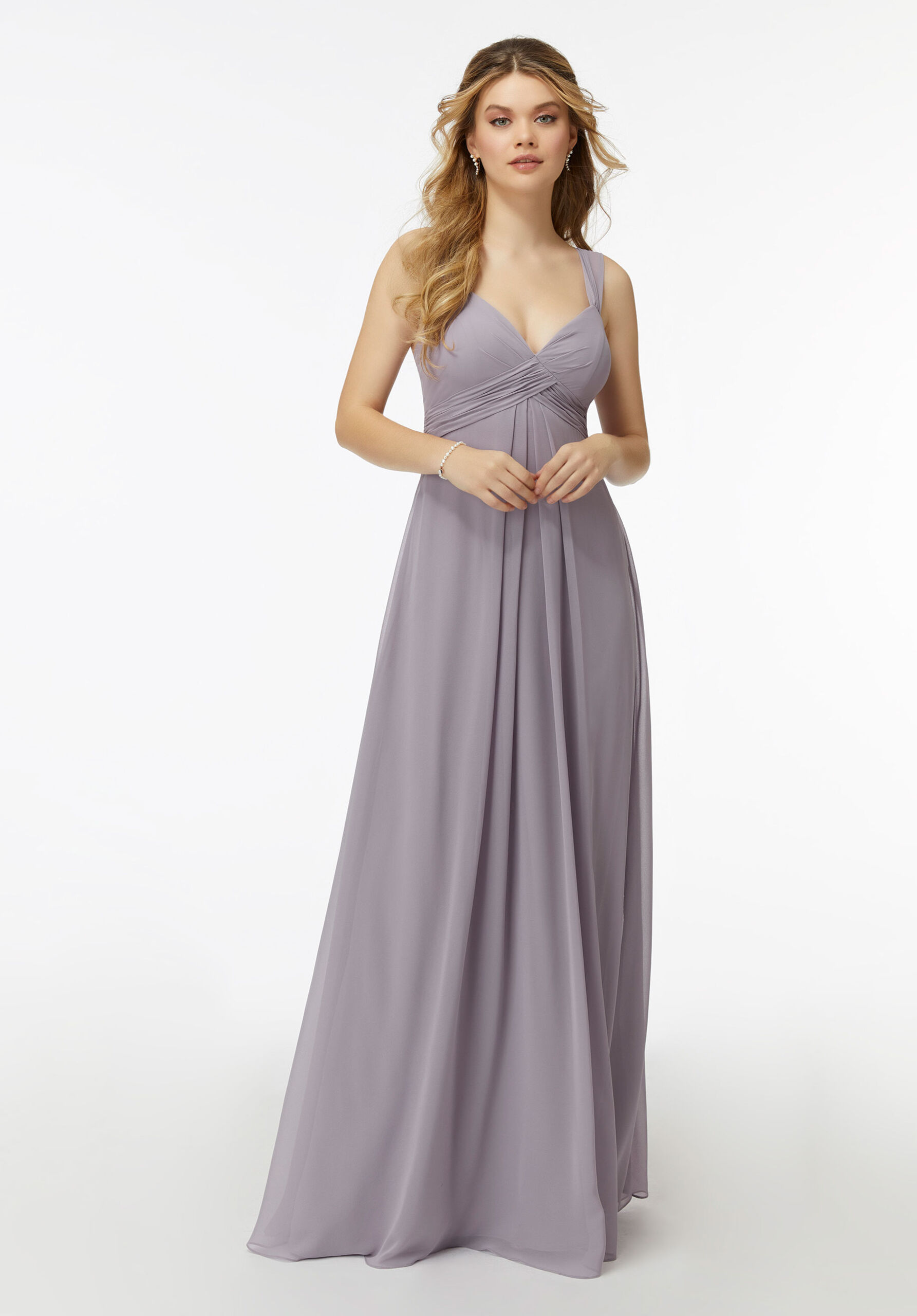 Mori Lee Bridesmaids Collection: 21734 - Draped Chiffon Bridesmaid Dress with Sash Gown