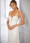 About Clarissa: This slim A-line, sequined net wedding dress has a v-neckline and sleeveless bodice.