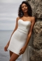 Our Nikita designer wedding dress is here to make power moves. The chic short dress looks luxe in Larissa satin with a strapless, modified sweetheart neckline and detachable waist sash with streamers in back for added drama. Shown in Ivory. Style the dress with our Pearl and Crystal Beaded Bow Sleeves, sold separately as Style 11510, for a glamorous touch.