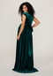 Velvet maternity bridesmaid dress with v-neckline and cap sleeves.