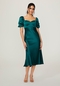 Chiffon maternity bridesmaid dress with sweetheart neckline, spaghetti straps, and off-the-shoulder sleeves.