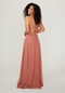 Chiffon bridesmaid dress with v-neckline, spaghetti straps, and keyhole, tie-back.