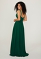 Chiffon bridesmaid dress with sweetheart, v-neckline, and straps.