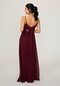 Chiffon bridesmaid dress with scoop neckline, spaghetti straps, and tied keyhole back.