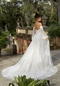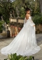 The sparkle tulle A-line has a strapless sweetheart bodice and detachable bishop sleeves.