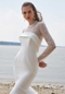Modern minimalist at its best, our Pepper designer wedding dress is a sleek Larissa satin gown with clean lines and contoured seams. The chic strapless neckline has a cool cuff with buttons down to the hemline for a classic bridal element. Shown in Ivory. Pair the dress with our Chantilly Lace Button Back Jacket for a more traditional and romantic look, sold separately as Style 11507.