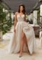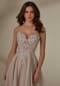 Romantic A-line has a sheer corset bodice designed with crystal beaded embroidered lace on a classic box-pleated tulle skirt.