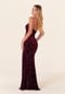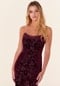 Glamorous floral velvet bridesmaid dress hugs the body in a sheath silhouette with a strapless neckline and front skirt slit.