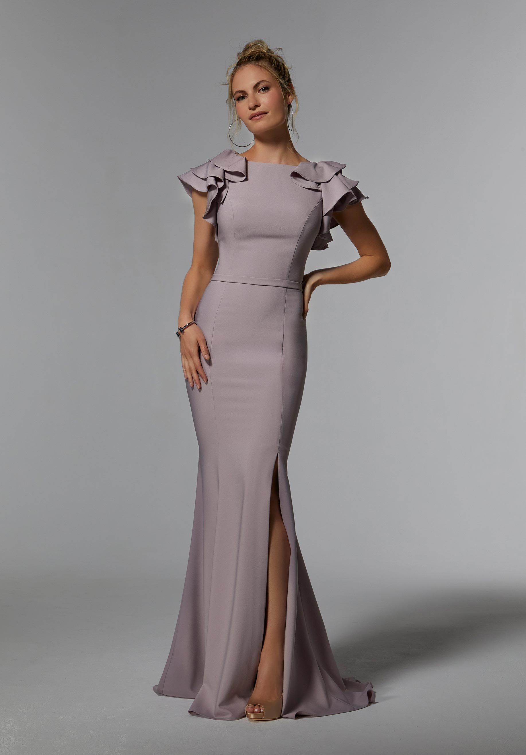 Mori Lee Collection: 72922 - Stretch Crepe Fit and Flare Evening Gown with Flounced Sleeves Gown