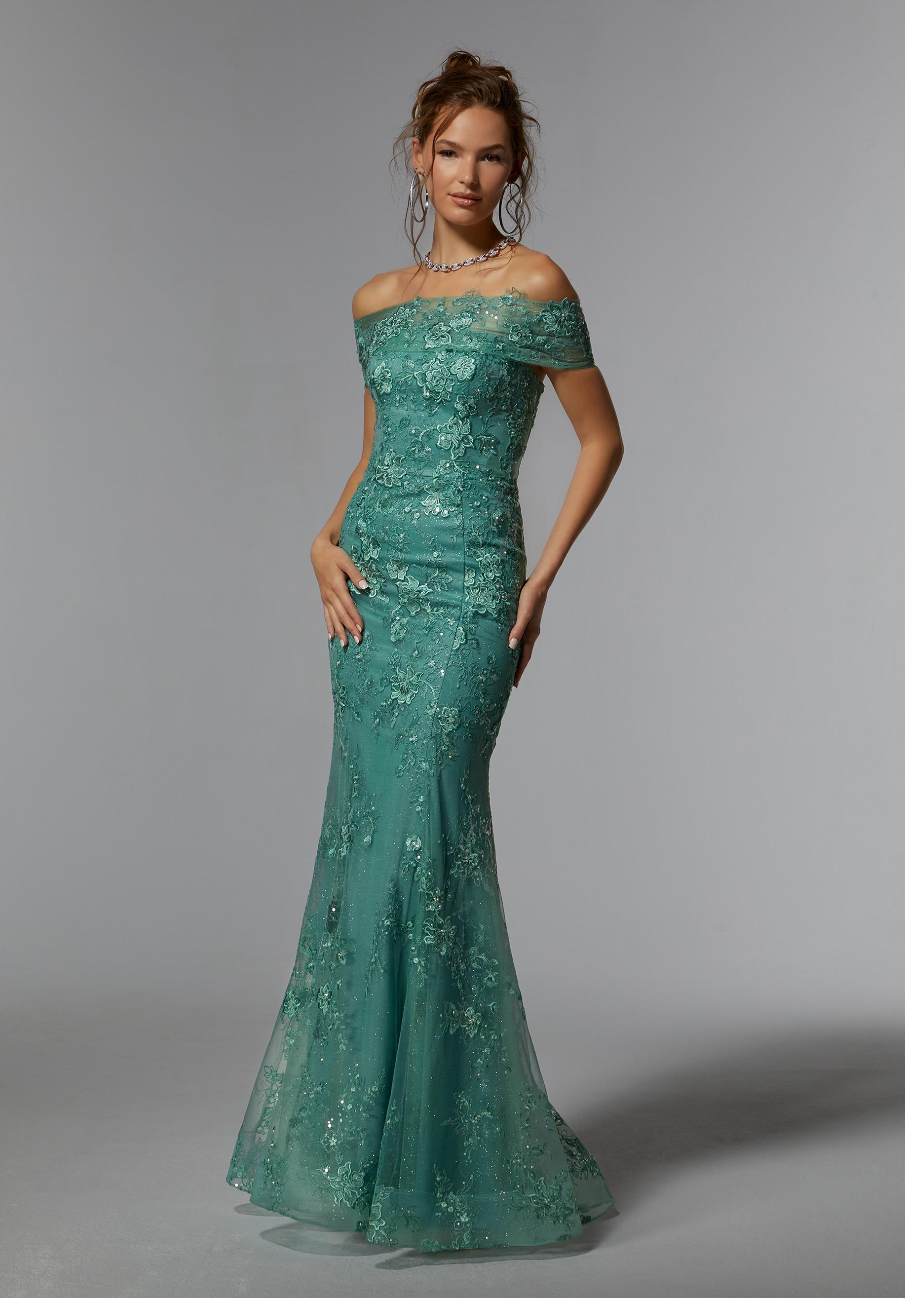 Mori Lee Collection: 72936 - Frosted Embroidered Net Evening Gown with Crystal Beading Gown