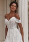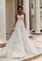 It's all about texture with our Phaedra designer wedding dress. The breathtaking ball gown has a sheer corset bodice with ruched detailing, designed with crystal beaded, embroidered lace that cascades down the dress. The real showstopper is the A-line skirt with ruffled godet insets that add volume and shape for a glamorous look. Pair the dress with the matching detachable off-the-shoulder sleeves. Shown in Ivory/Champagne/Honey.
