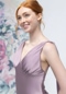 This luxe satin gown features a flattering V-neckline, ruched bust, and defined empire waist that enhances the silhouette with subtle structure. An open back low back adds a sultry appeal with ruched detail for a flattering fit. The coordinating neck scarf elevates the look for added drama.